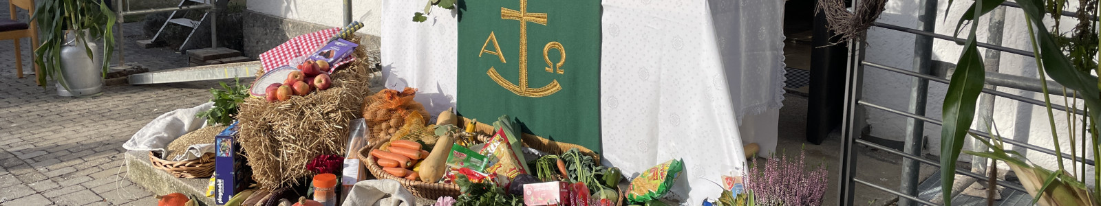 Schon früh am Morgen war emsiges Treiben am Kirchplatz. Aufgrund der Coronabestimmungen dürfen nur 20 Personen in der Kirche am Gottesdienst teilnehmen. Die Kirche ist zu klein. Daher haben die Kirchenvorstehenden auf dem Kirchplatz für den Erntedankgottesdienst aufgebaut. Der Eingangsbereich wurde also probt zum Altar. Ein Kommentar in den Social Media lautete gleich: "Na, wenn die Kirche zu klein wird, das ist dann doch DIE WAHRE ERNTE! Freut mich."