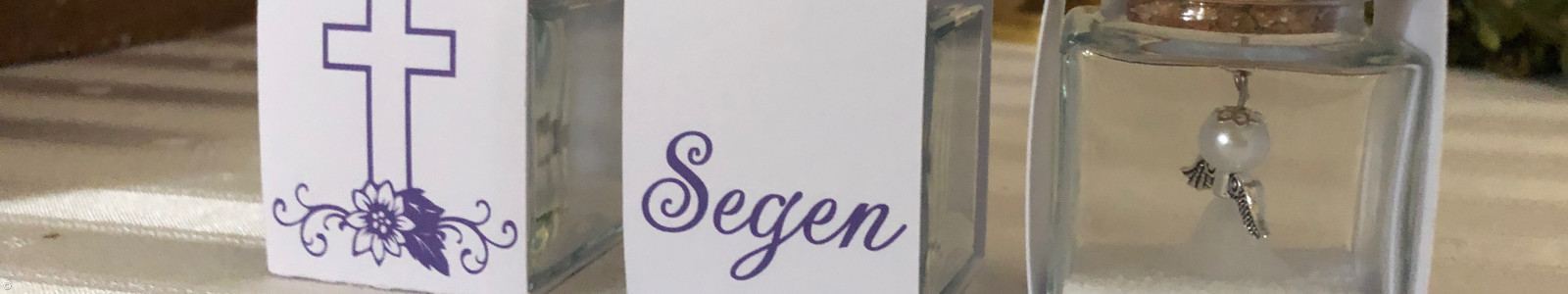 Von Konfiteamer und Pfarrer gab es "etwas Brauchbares in Symbolform" mit auf den Weg in die Konfizeit. Einen kleinen Schutzengel in einem Glas, auf dem "Segen" stand.