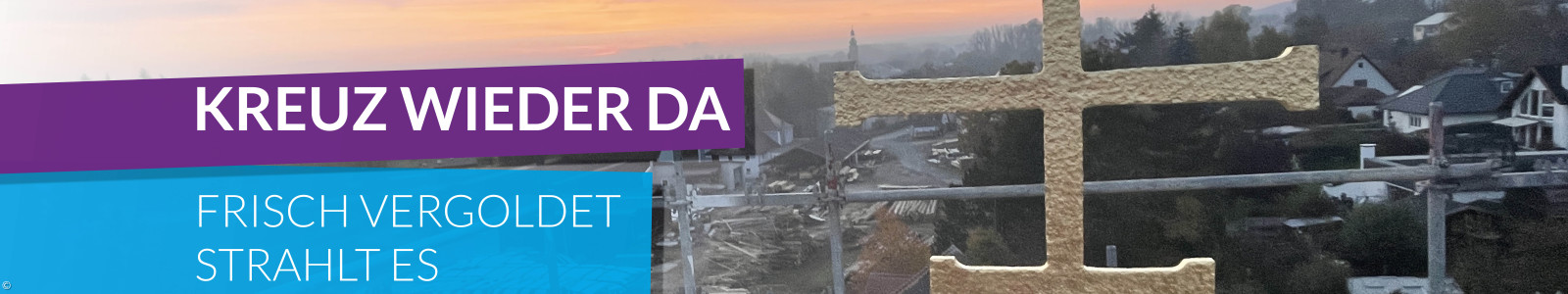 Am Samstag Nachmittag wurde das neuvergoldete Turmkreuz enthüllt. Längere Zeit war die Kirche ohne Kreuz. Korrosion und Rost haben es verfärbt und vernarben lassen. Einst war es golden, aber das ist so lange her, dass selbst die Nachbarn keine Erinnerung mehr daran haben.