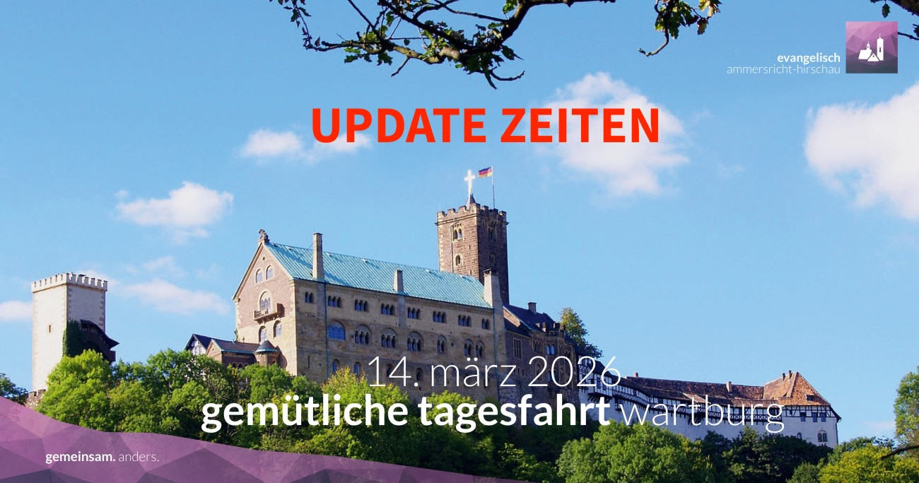 Gemütlich fahren wir am 14. März 2026 zur Besichtigung und feiern auf dem Weg einen Gottesdienst im Bus - kein Buß-, sondern ein Busgottesdienst mit mittelalterlicher Musik. Hier die aktuellen Zeiten und Infos für Mitfahrende: